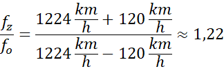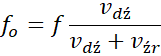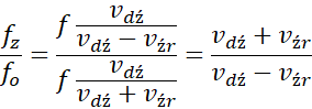 Wykorzystujemy wzór na efekt Dopplera. Zamieniamy jednostki na identyczne – w tym przypadku łatwiej zamienić na ze względu na brak błędu przybliżenia.