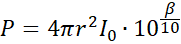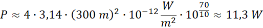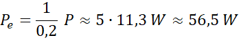 Wykorzystujemy wzór na natężenie dźwięku i przekształcamy go do wzoru na moc. Na podstawie poziomu natężenia wyznaczamy zależność na natężenie dźwięku. Łączymy ze sobą wzory. Obliczona moc jest 20% wartości mocy elektrycznej głośnika, więc mnożymy otrzymaną wartość razy 5.