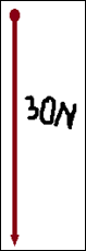 Grawitacja przyciąga ciała ‘w dół’. Skoro 1 mm odpowiada 1N, to wektor siły o wartości 30 N ma długość 3 cm.