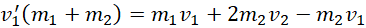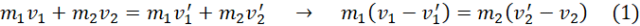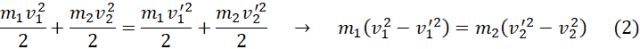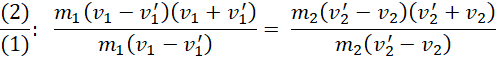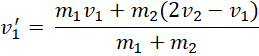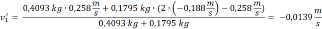 Zapisz zasadę zachowania pędu i zasadę zachowania energii. Przekształcamy wzory i połącz ze sobą poprzez podzielenie ich stronami. Następnie przekształcamy do wzoru na prędkość drugiego ślizgacza po zderzeniu. Podstaw do równania (1). Na koniec podstaw dane i wykonujemy obliczenia.