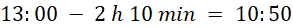 Podróż zajmie 2 h 10 min, należy więc wyjechać o godzinie 10:50.
