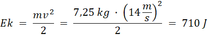 Energia potencjalna kuli wynosi 157 J, natomiast energia kinetyczna 710 J.