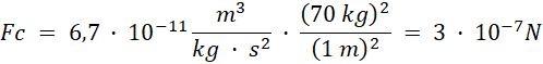 Przyjmując, iż obie osoby ważą 70 kg, a odległość między nimi to 1 m, siła ciężkości będzie wynosić: