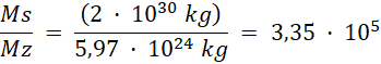 Stosunek masy Słońca do masy Ziemi wynosi .