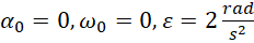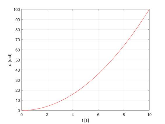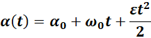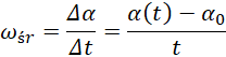 Ze wzoru na średnie przyspieszenie kątowe wyznaczamy zależność prędkości kątowej od czasu. Ruch jest jednostajnie przyspieszony, więc przyspieszenie kątowe jest stałe. Następnie korzystając ze wzoru na średnią prędkość kątową, wyznaczamy zależność kąta od czasu. Średnią prędkość kątową wyrażamy odpowiednim wzorem, za zmienną podstawiamy wyznaczoną wcześniej zależność.