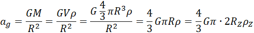 Oblicz przyspieszenie grawitacyjne panujące na powierzchni planety, której średnia gęstość jest równa średniej gęstości Ziemi, a promień jest dwukrotnie większy od promienia Ziemi.
