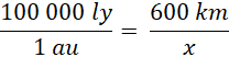 Zapisujemy stosunek odległości w rzeczywistości do odległości w modelu. Odległości rzeczywiste dla dwóch sytuacji odczytujemy z tabeli na s. 135.