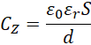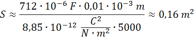 Korzystamy ze wzoru na pojemność kondensatora płaskiego, z uwzględnieniem dielektryka, i przekształcamy go do zależności na powierzchnię okładek.