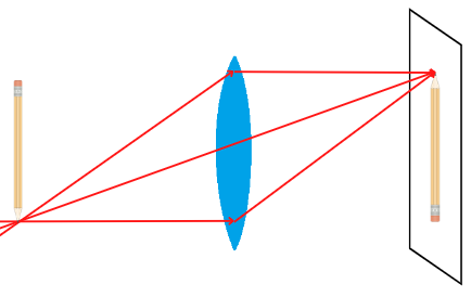 Narysuj przykładowe promienie pochodzące od przedmiotu, pamiętając, iż przechodzą one przez ognisko, bądź nie ulegają załamaniu, gdy przechodzą przez środek soczewki.