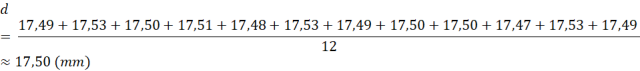 Średnicę wałka oblicz jako średnią wszystkich pomiarów. Niepewność oszacuj wykorzystując pomiary z największym odchyleniem od wartości średniej.