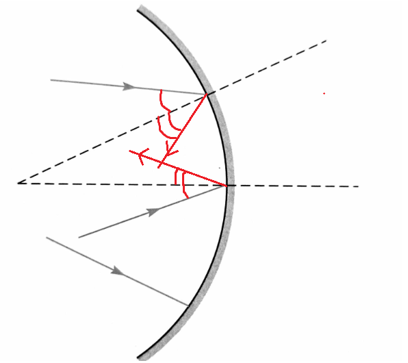 W tym zadaniu narysuj bieg niebieskich promieni po odbiciu oraz pojedynczym łukiem zaznacz kąt padania, a podwójnym łukiem – kąt odbicia.