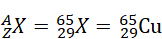 Wyznacz liczbę atomową oraz nazwę pierwiastka, którego jądro zawiera 36 neutronów oraz którego liczba masowa wynosi 65.