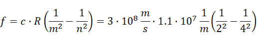 Wzór, któego będziesz potrzebować, to wzór Rydberga, który opisuje długość fali widmowej. Ten wzór to