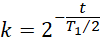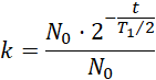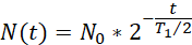 W przypadku rozpadu połowicznego możesz użyć wzoru