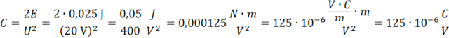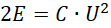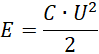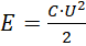 , gdzie E – energia kondensatora, U – napięcie między okładkami kondensatora, C – pojemność kondensatora.