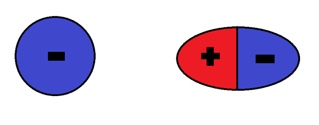 Dipol ustawi się ładunkiem dodatnim w stronę zewnętrznego ładunku ujemnego. Stanie się tak, ponieważ ładunki o różnych znakach się przyciągają.