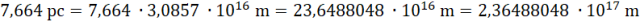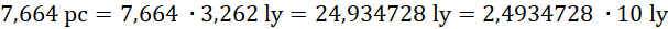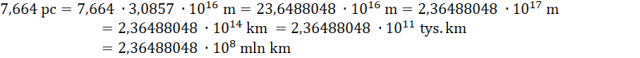 Tutaj zamieniasz parseki na różne jednostki. W rozwiązaniu podano najpierw zaokrąglenia do trzech, a następnie do dwóch miejsc znaczących.