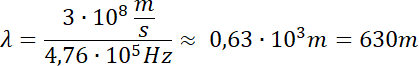 Długość fali elektromagnetycznej obliczamy za pomocą przekształcenia wzoru na prędkość fali elektromagnetycznej: