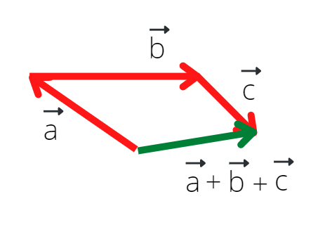 Przerysowujemy wektory, zachowując ich długość i położenie względem osi poziomej. Następnie przesuwamy wektory tak, aby początek kolejnego znajdował się w punkcie końca poprzedniego. Na koniec łączymy początek wektora