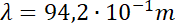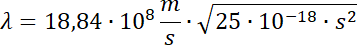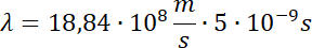 Obliczamy długość fali na podstawie wzoru na prędkość fali. Po wyprowadzeniu wzoru i podstawieniu danych z ćwiczenia wychodzi, że długość wysłanej fali wynosi