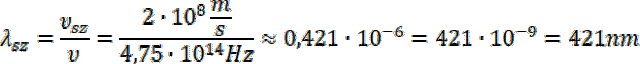 Częstotliwość fali nie zmienia się podczas przejścia między ośrodkami. Dlatego częstotliwość fali światła laserowego w powietrzu i szkle będzie taka sama. Aby obliczyć częstotliwość fali należy przekształcić wzór na prędkość światła c stanowiący iloczyn długości i częstotliwości fali w ośrodku. Aby obliczyć długość fali w szkle należy przekształcić wzór na częstotliwość fali w tym ośrodku.