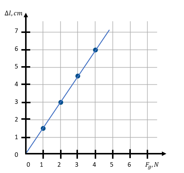 Następnie zaznacz te punkty na wykresie. Poprowadź przez te punkty prostą pokazującą zależność wydłużenie sprężyny od ciężaru ciała.
