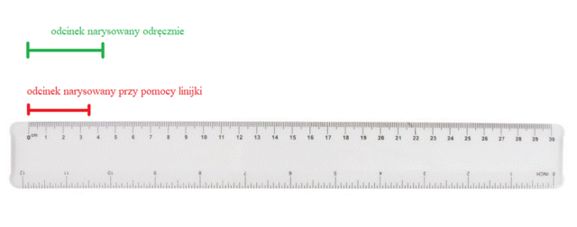 Sporządź rysunki odcinków bez mierzenia oraz za pomocą linijki.