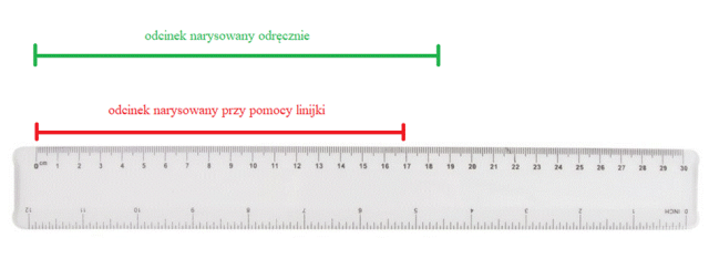 Sporządź rysunki odcinków bez mierzenia oraz za pomocą linijki.