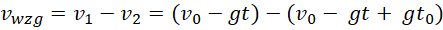 Wykorzystujesz wzory użyte w poprzednim podpunkcie na prędkość piłeczek. Otrzymujesz stałą wartość prędkości względnej. Oznacza to, że piłeczki względem siebie poruszają się jednostajnie, czyli ruchem jednostajnym.
