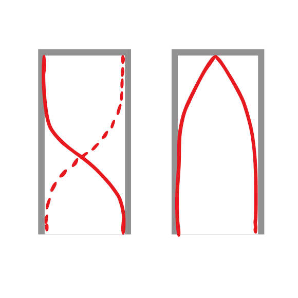 Należy narysować przebieg fali podstawowej w każdej z piszczałek.