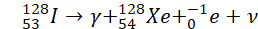 2. Równania reakcji rozpadu jądra jodu-128 w wyniku którego emitowane jest promieniowanie gamma i beta minus: