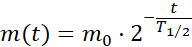 Wzór na masę próbki pozostałą po pewnym czasie w wyniku połowicznego rozpadu początkowej liczby obiektów: