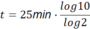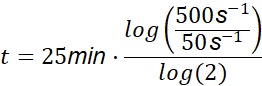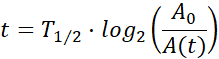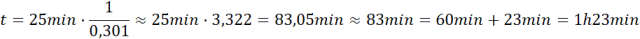 1. Używasz wzoru opartego na logarytmach, który pozwala obliczyć czas na podstawie zmiany aktywności.