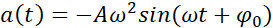Pomocniczo sporządzamy wykres przedstawiający zmieniające się przyspieszenie w czasie puntu drgającego. Następnie uważnie odczytujemy przedziały czasowe, w których wartość bezwzględna wzrasta. Uważamy tutaj na to, że kiedy wykres maleje po ujemnych wartościach, to biorąc wartości bezwzględne, otrzymamy wartości kolejno rosnące.