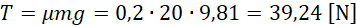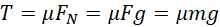 Siła tarcia to siła nacisku przeskalowana przez współczynnik tarcia. W tym przypadku siła nacisku jest tożsama z siłą grawitacji.