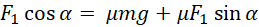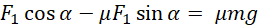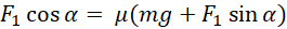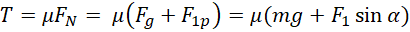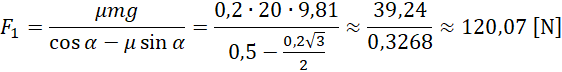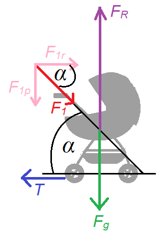 Równoległa składowa siły, z jaką pchany jest wózek, równoważy siłę tarcia. Siła tarcia zależy od siły nacisku. Siła nacisku w tym przypadku to suma siły grawitacji oraz siły prostopadłej składowej .