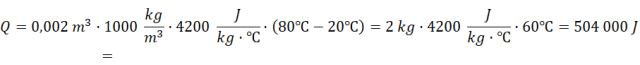Wyznacz energię potrzebną do ogrzania 2 litrów wody od 20°C do 80°C.