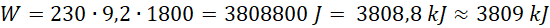 Silnik elektryczny w ciągu 0,5 h wykona pracę 3809 kJ.