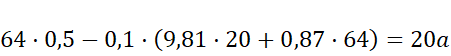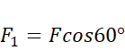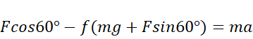 Robotnik działa siłą skierowaną ukośnie ku dołowi. Oznacza, że ruch skrzyni zależy od poziomej składowej tej siły, zaś nacisk ciała ma podłoże, od którego zależy tarcie, jest powiększony o składową pionową siły robotnika. Rozkład sił tworzy trójkąt prostokątny, w którym przy znanym kącie przy dowolnym wierzchołku i znanym jednym boku można obliczyć dowolny bok, z zależności trygonometrycznych. Tak więc składowa pionowa skaluje siłę ukośną przy pomocy sinusa, a pozioma cosinusa. Oblicz wartość przyspieszenia pamiętając, że siła pozioma pomniejszona o tarcie powoduje, że masa porusza się z przyspieszeniem a.