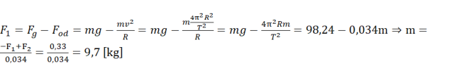 Ciężar na równiku, na podstawie którego obliczam masę poprzez przekształcenie: