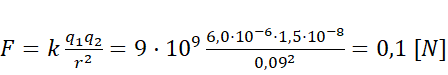 Oblicz siłę, z jaką przyciągają się kule. Następnie oblicz siłę nacisku kuli na podłogę jako różnicę ciężaru i siły elektrostatycznej, działającej w górę.