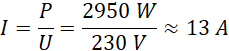 Natężenie prądu w sieci będzie wynosić około 13 A, zatem bezpiecznik 10 A będzie nie wystarczający.