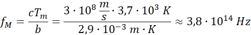 Maksymalne częstotliwości promieniowania wyznacz z prawa Wiena po przekształceniu: