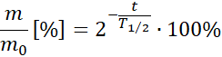 Wyznaczając wartości liczbowe w ostatniej kolumnie posłuż się prawem rozpadu dla masy: