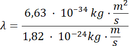 Aby wyznaczyć odpowiadającą mu długość fali de Broglie'a, skorzystajmy ze wzoru na pęd materii: