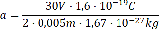 Twoim zadaniem w podpunkcie a jest obliczenie wartość przyspieszenia cząstki alfa w polu elektrycznym kondensatora płaskiego.