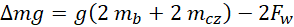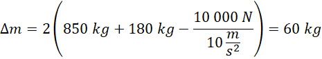 Na podstawie rysunków narysowanych w poprzednim punkcie zapisujemy równość sił w dwóch przypadkach. Wartość siły oporu w obu przypadkach jest taka sama, więc możemy wyznaczyć ją z jednego przypadku i wstawić do drugiego. Następnie przekształcamy otrzymaną zależność i wstawiamy dane liczbowe.