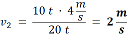 Korzystamy z zasady zachowania pędu, która mówi, że suma pędów przed zderzeniem musi być równa sumie pędów po zderzeniu. Ponieważ drugi wagon był nie ruchomy, pęd początkowy jest równy tylko pędowi pierwszego wagonu. Nastąpiło zderzenie niesprężyste, dlatego pęd końcowy jest równy (m1 + m2) ∙ v2.