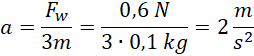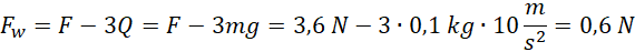 Wiedząc, że trzy połączone ze sobą kulki o masach 0,1 kg każda, poruszają się w górę pod wpływem siły