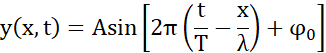 Fala porusza się zgodnie ze zwrotem osi, więc skorzystajmy ze wzoru: